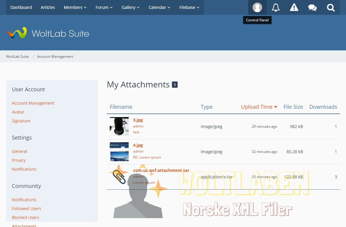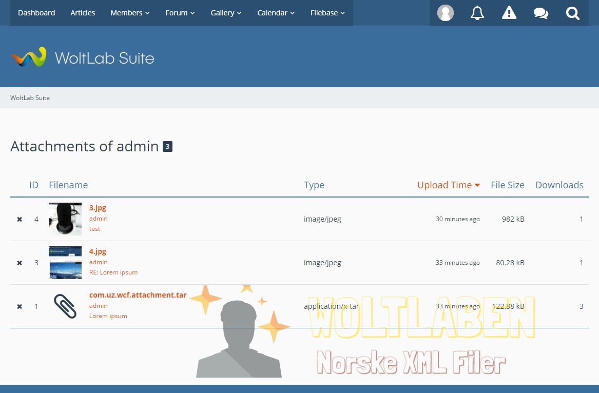 Attachments could quickly become a problem for the administrator of a community for legal reasons. Nevertheless, the possibilities of Woltlab Suite or WoltLab Community Framework for monitoring and management of attachments are relatively modest. Attachments gives administrators more functions to achieve that in a better way.